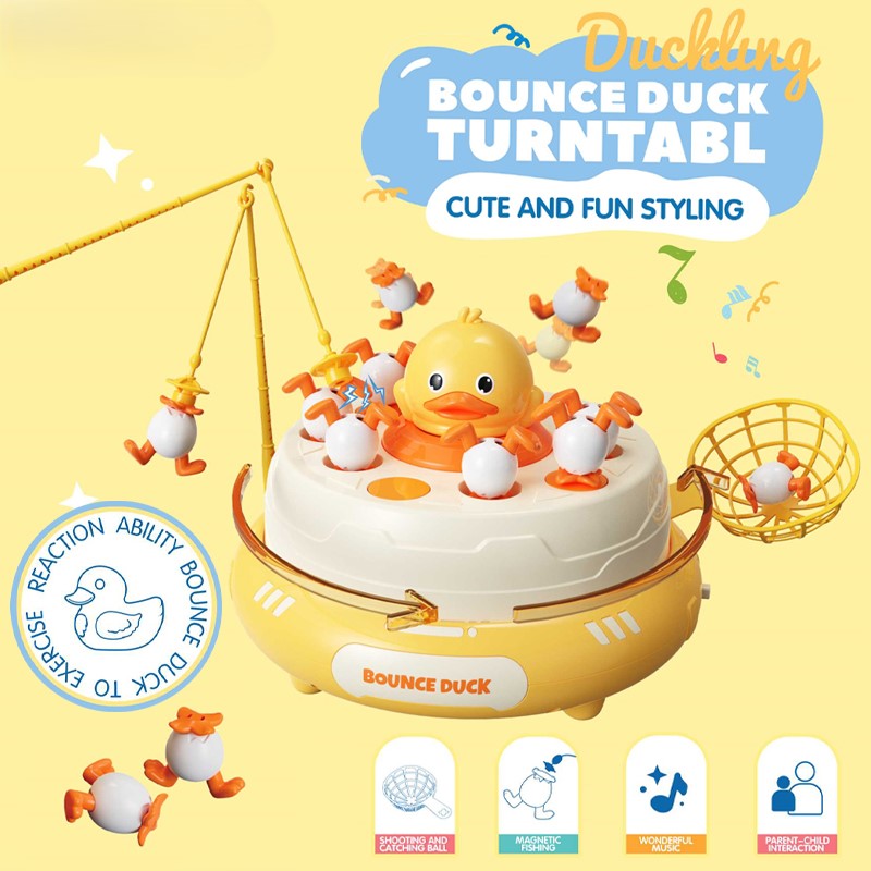 Przygotuj się na prawdziwy wybuch radości i śmiechu! Sympatyczna kaczuszka BOUNCE DUCK nie potrafi usiedzieć w miejscu – kręci się wesoło, wydaje dźwięki i w rytm skocznej muzyki wyrzuca swoje małe pisklęta w powietrze! Twoim zadaniem jest złapać je wszystkie, zanim wylądują na podłodze – liczy się szybkość, refleks i uśmiech!
